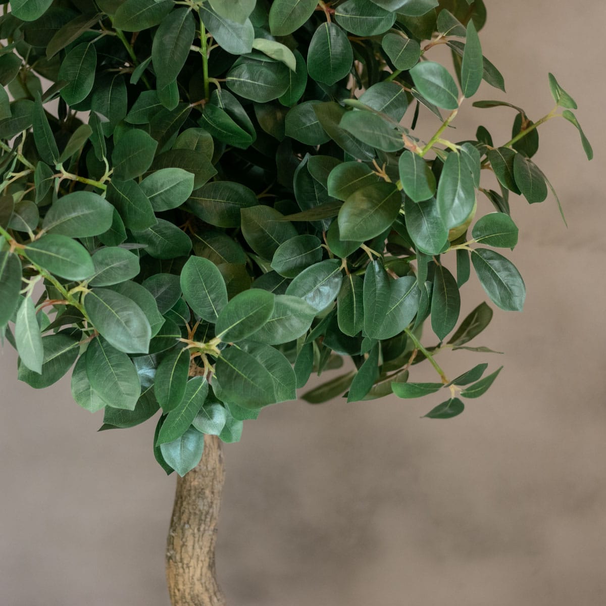 Kunstboom met een natuurlijke stam en kunsttakken met groen blad.
