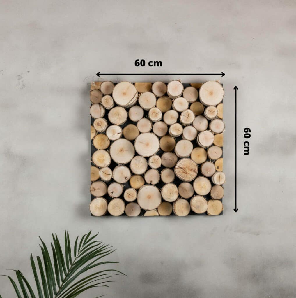 Wilt u een natuurlijke uitstraling in uw huis of op uw bedrijf, kies dan voor een wandpaneel met houten stammetjes. Ieder wandpaneel wordt bij ons handgemaakt en is een uniek exemplaar. Deze wandpanelen zijn ook beschikbaar in de afmetingen 80 x 80 cm en 100 x 100 cm.