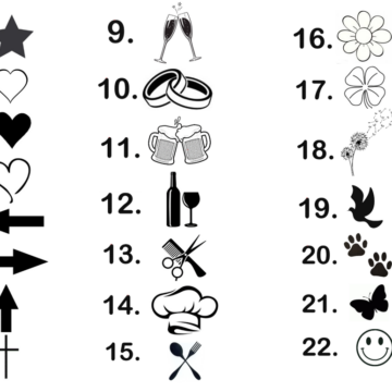 Kies zelf een lettertype en eventueel een symbool. Voer daarna je eigen tekst in tot maximaal vijftekstregels. Heb je speciale wensen, bijvoorbeeld een tekstregel groter of het symbool onder of langs de tekst? Beschrijf dit dan bij de opmerkingen. Vermeld ook of de pijl naar links of rechts moet wijzen.