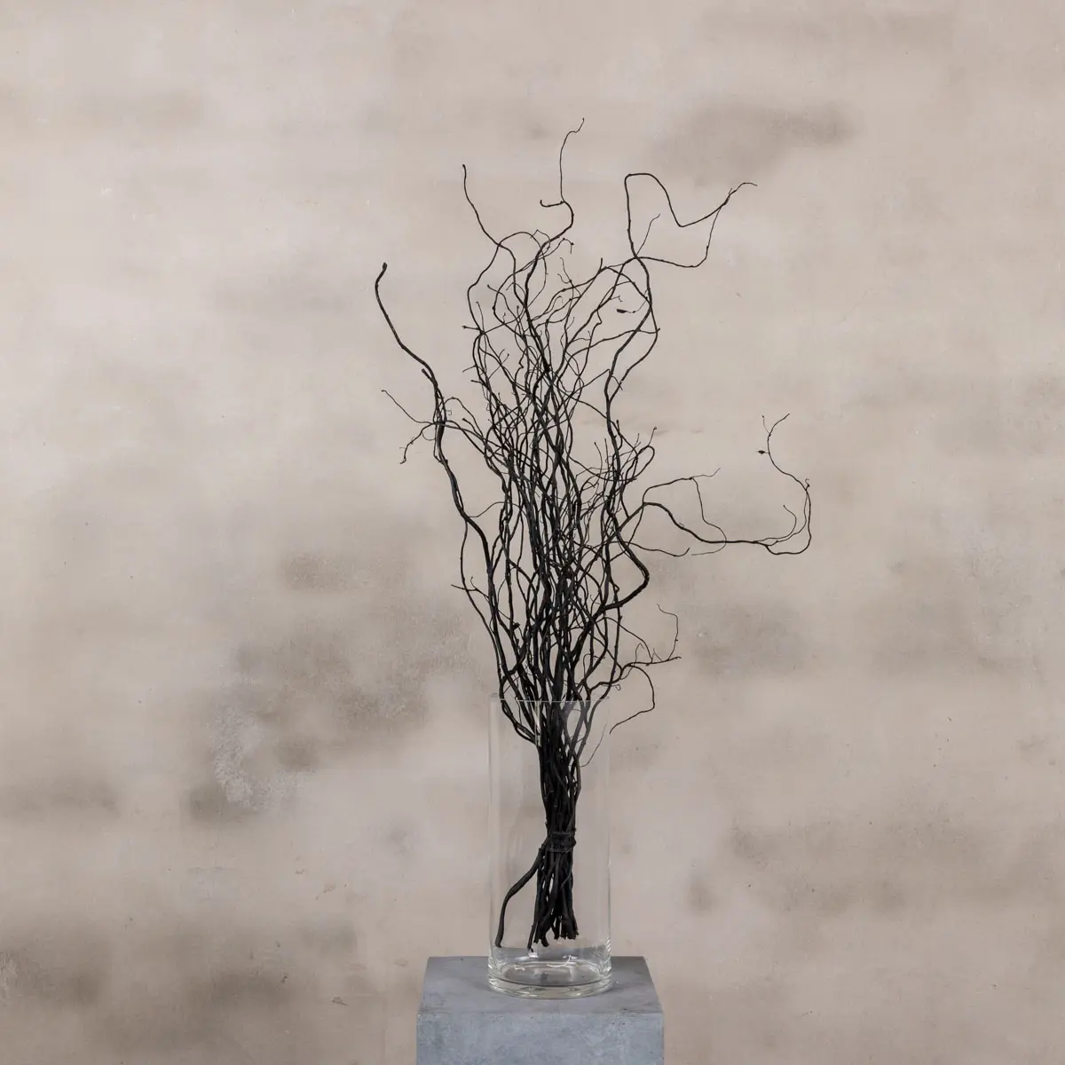 Bundel van 10 zwarte kronkelwilgentakken, 70 cm.