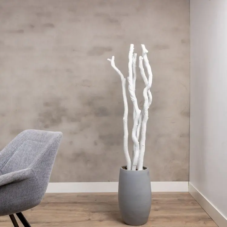 Deze set van 5 robuuste wilgentakken uit de Svea-serie is een echte blikvanger voor in huis of op kantoor. Wit geverfd voor een frisse en moderne uitstraling, is deze set een echte blikvanger in ieder interieur. De natuurlijke kronkelvorm blijft prachtig zichtbaar onder de verflaag, waardoor de takken zowel speels als strak ogen.