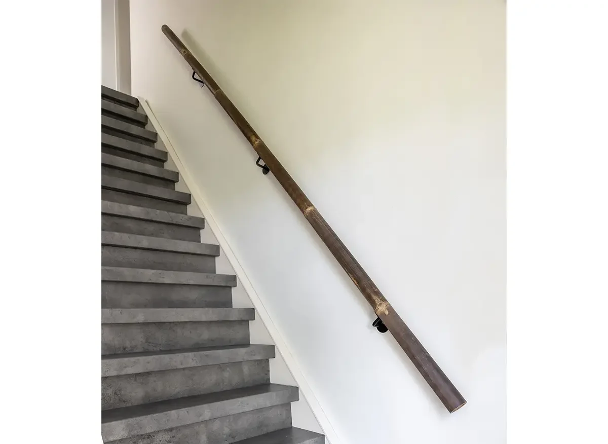 De leuning wordt zorgvuldig geselecteerd op vorm, stevigheid en kleur, en is vervolgens glad afgewerkt voor een prettig en veilig handgevoel. Elke bamboestok is uniek — met natuurlijke variaties in structuur en diameter die zorgen voor een authentieke, levendige uitstraling.