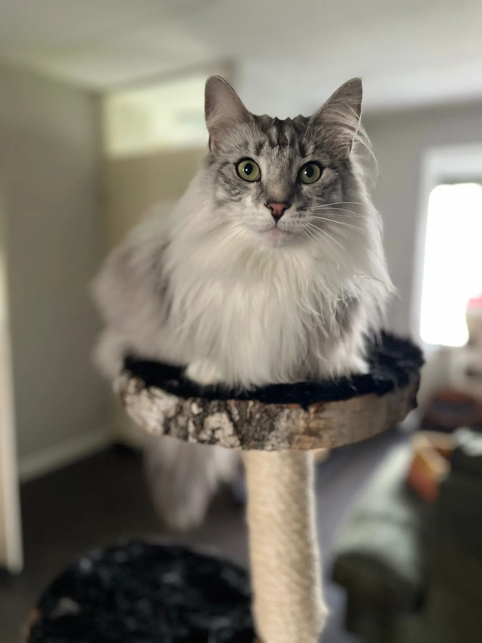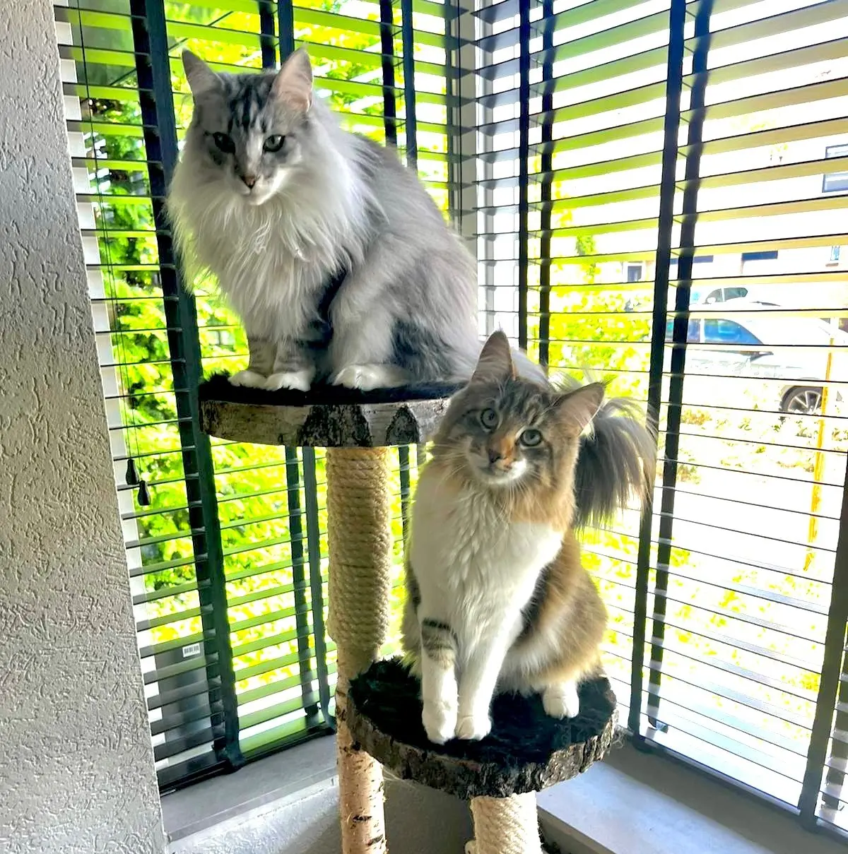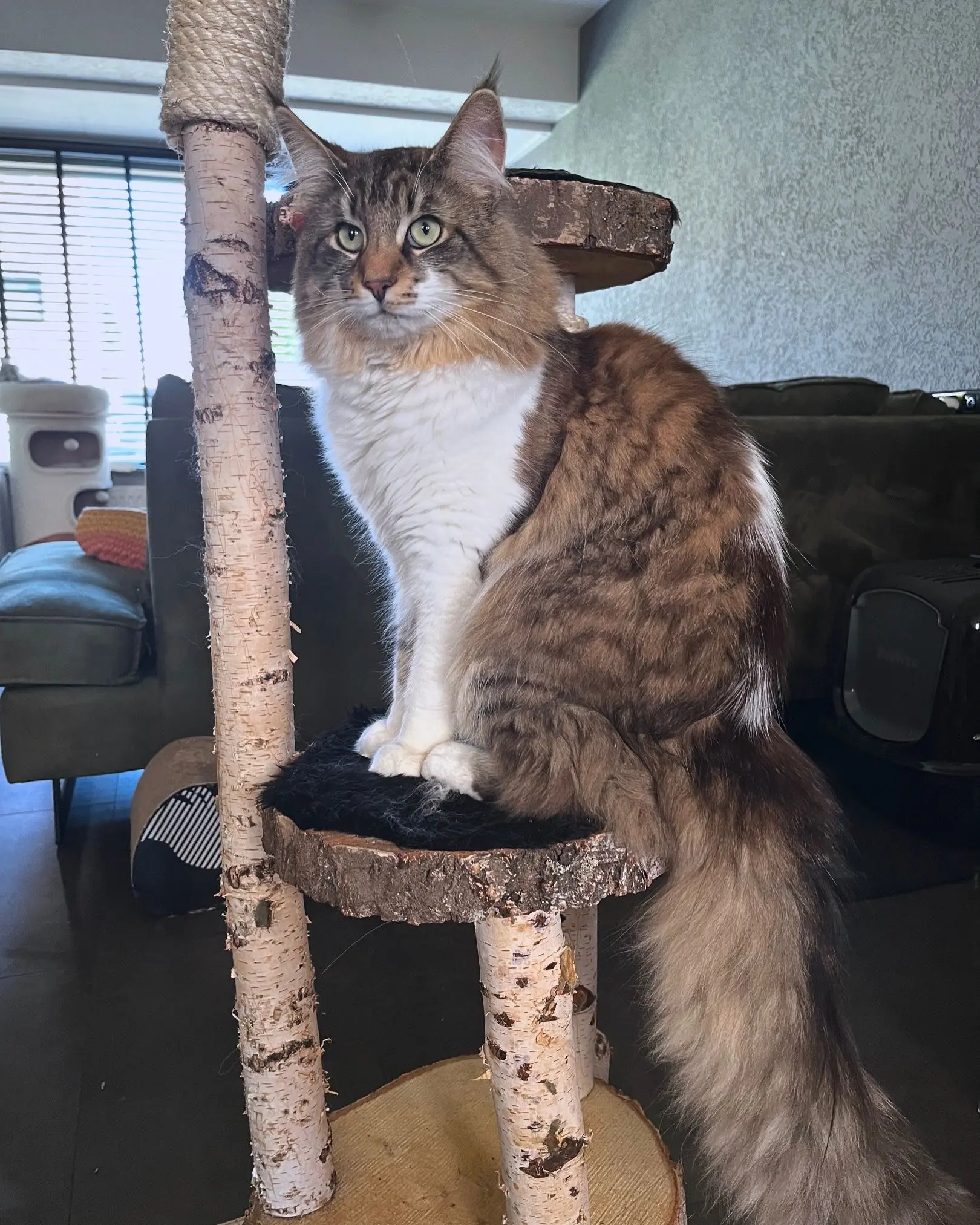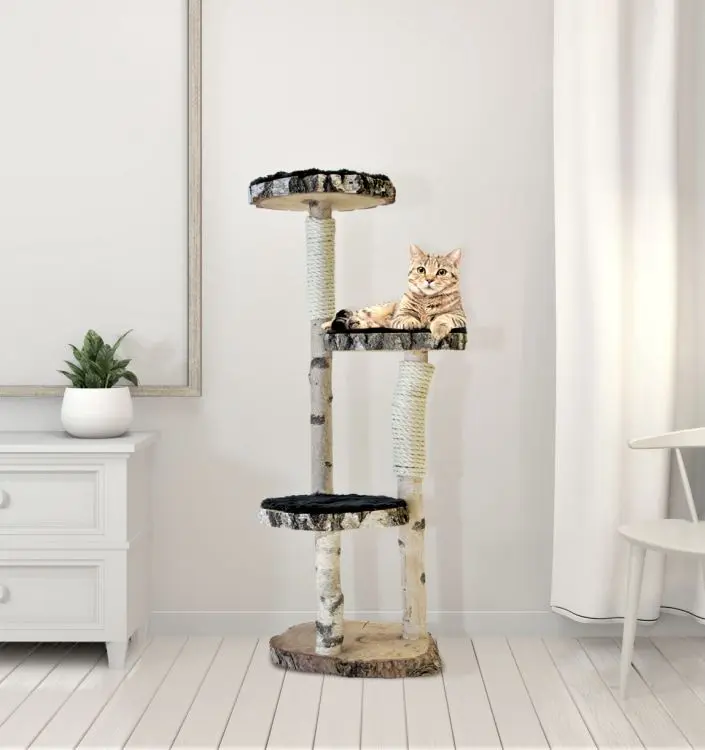 De stammen zijn deels omwikkeld met natuurlijk sisaltouw, waardoor jouw kat voldoende plekken heeft om zijn nagels te scherpen. De combinatie van hout en touw maakt deze krabpaal aantrekkelijk én duurzaam in gebruik.