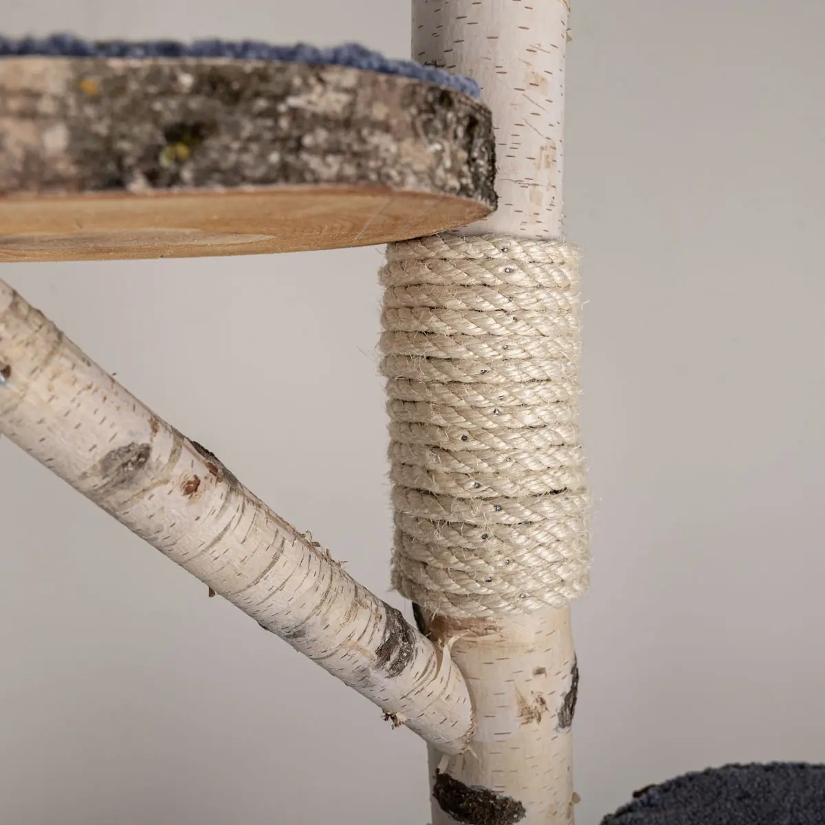 Wij werken hier met sisaltouw wat uitermate geschikt is voor katten om lekker aan te krabben.