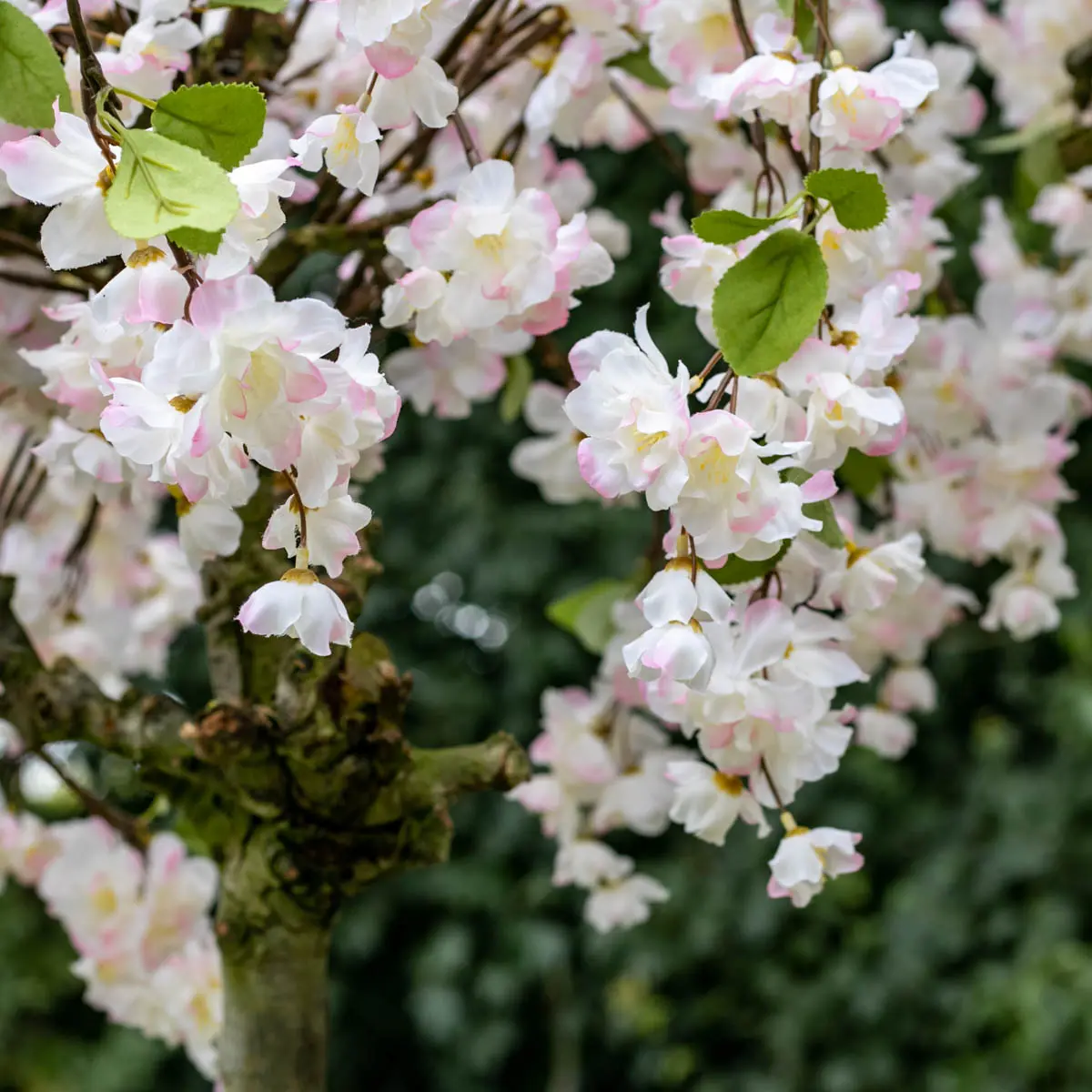 Met de bloesemboom Deluxe Chloë haal je een echte eyecatcher in huis. Deze indrukwekkende kunstbloesemboom van 200 cm hoog heeft een natuurlijke stam en een volle kroon van witte bloesemtakken met een subtiel vleugje roze die voor een luxe en sfeervolle uitstraling zorgen. Tussen de bloesems zitten ook frisse groene blaadjes, wat zorgt voor een nog natuurlijker en levendiger effect.