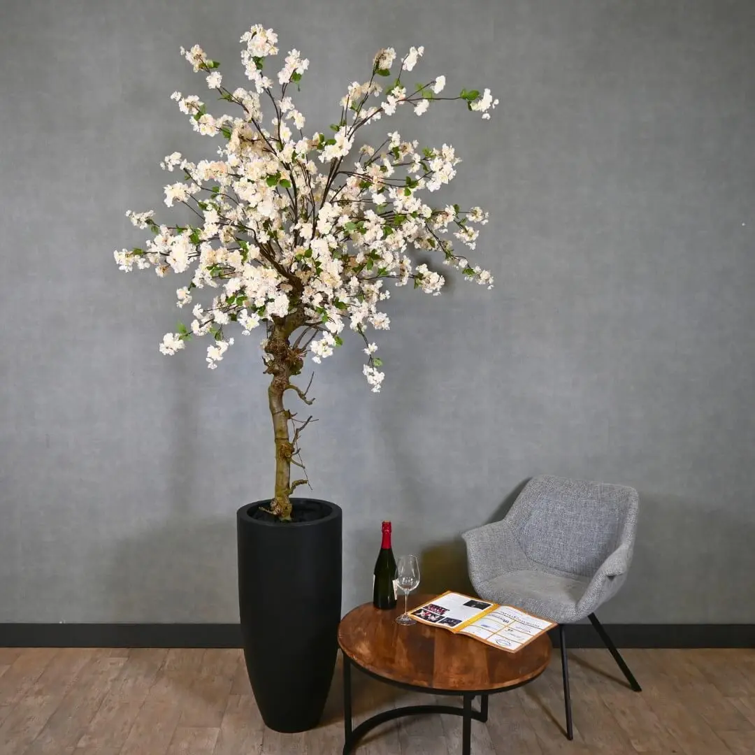 De boom wordt standaard geleverd inclusief een hoge overpot, zodat je hem direct een mooie plek in huis, kantoor of horecagelegenheid kunt geven. Dankzij de hoogwaardige kunstbloesems blijft de boom altijd fris en kleurrijk, zonder onderhoud.