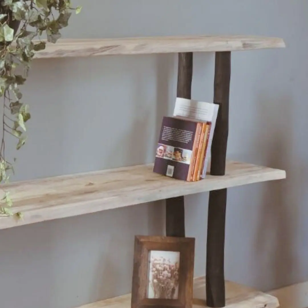 Met zijn uitdrukking van rauwe natuur en eigentijdse elegantie vormt dressoir Magnus een opvallend middelpunt in iedere ruimte. Vier smalle, diepzwart afgewerkte boomstam­poten dragen vier dikke legplanken van authentiek loofhout. De planken zijn licht geschuurd om hun doorleefde nerf, scheurtjes en kleur­nuances te behouden; precies die imperfecties geven Magnus zijn unieke karakter.