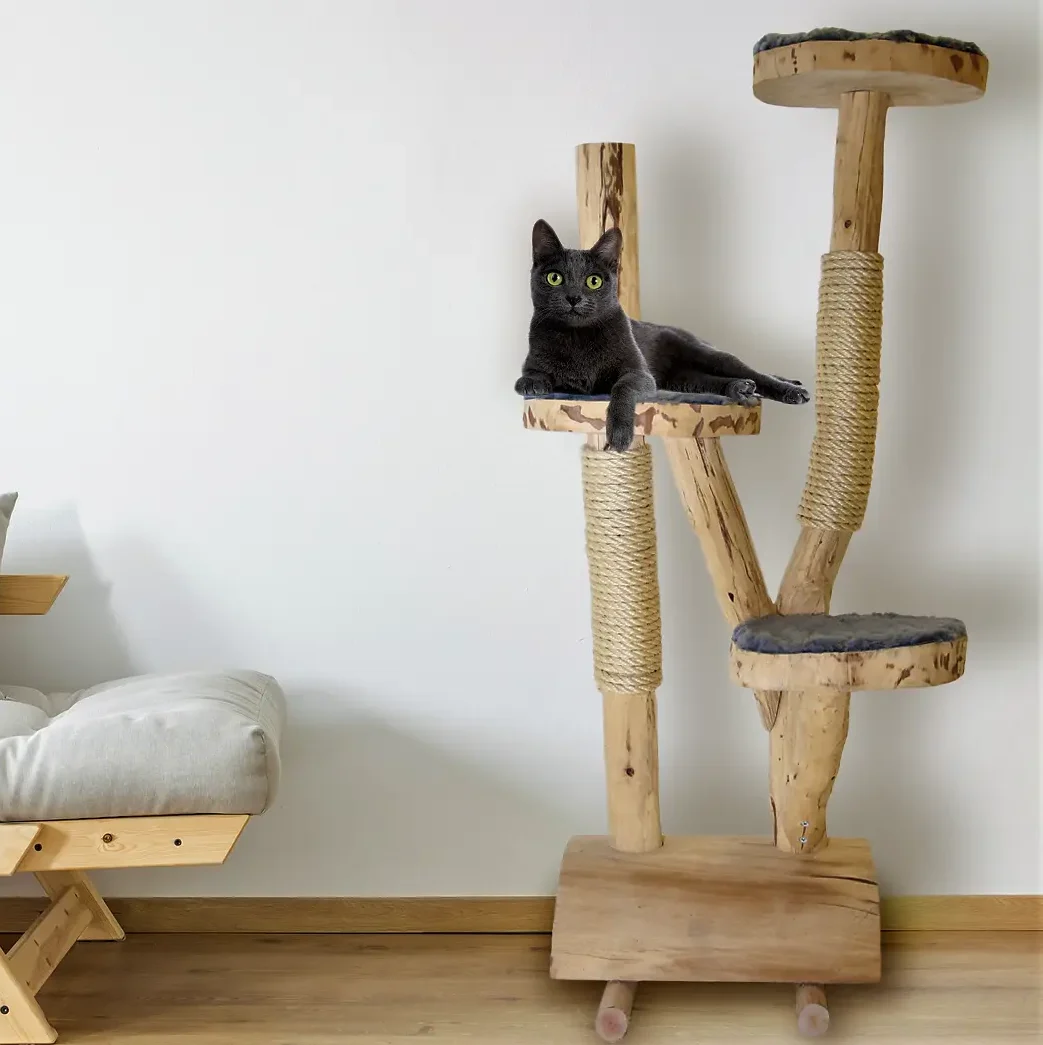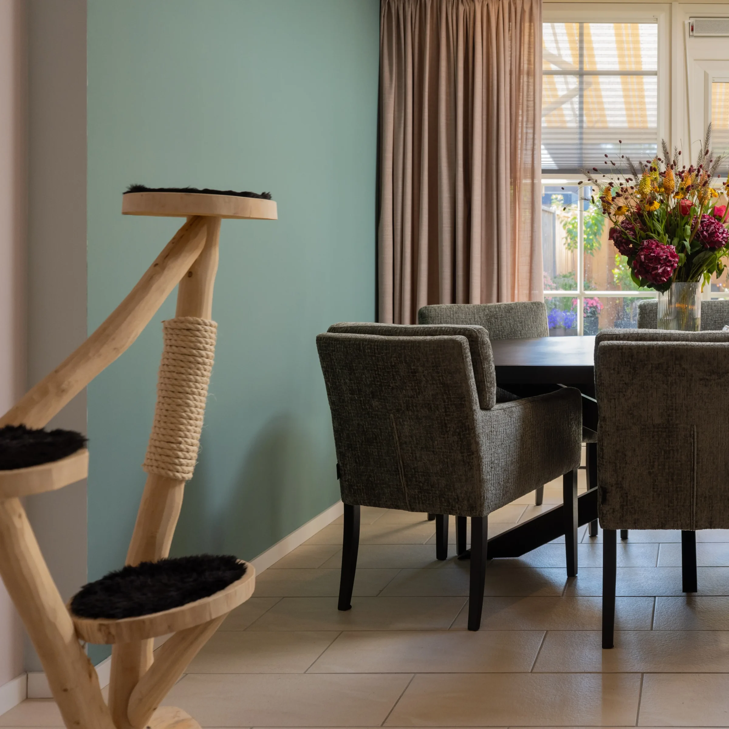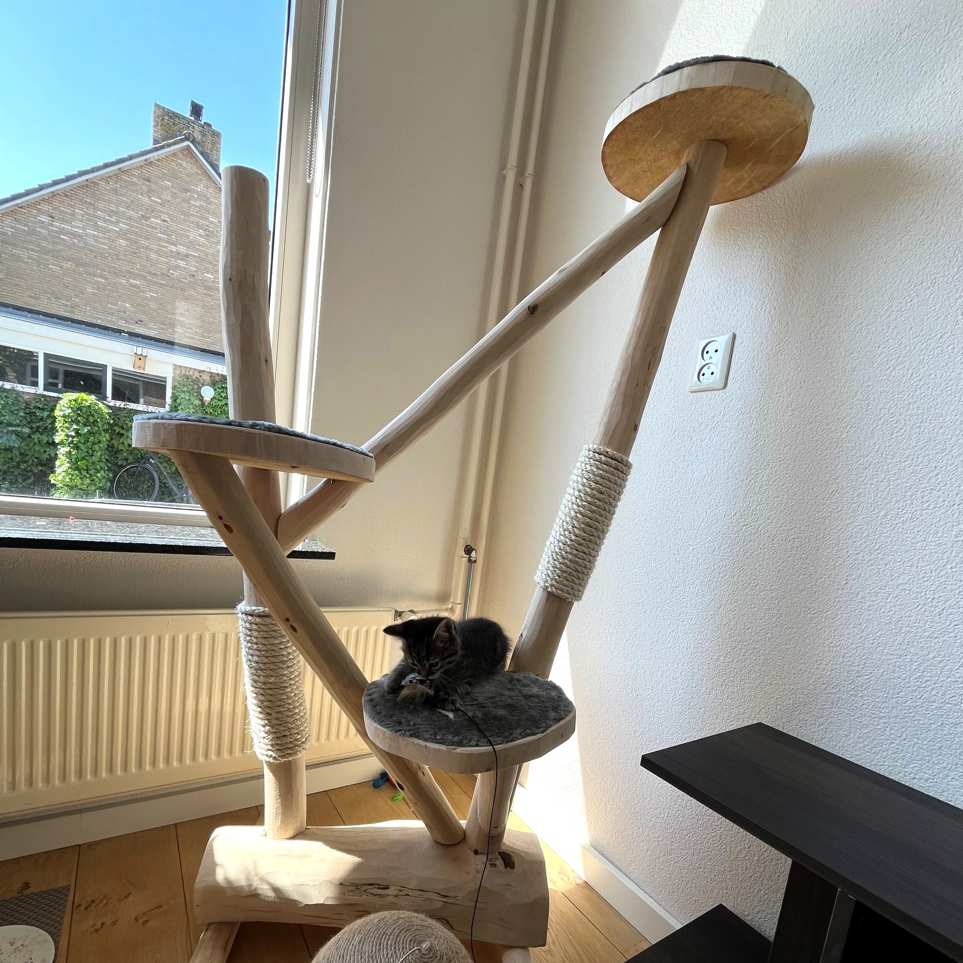 De stammen zijn stevig en deels omwikkeld met natuurlijk sisaltouw, zodat jouw kat zijn nagels gezond kan houden. De ruime plateaus bieden voldoende plek om te klimmen, spelen en ontspannen.