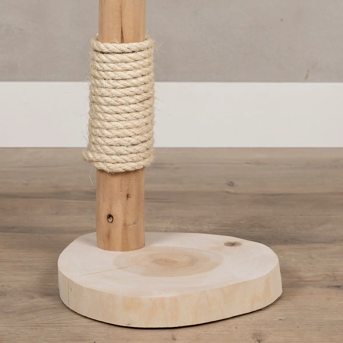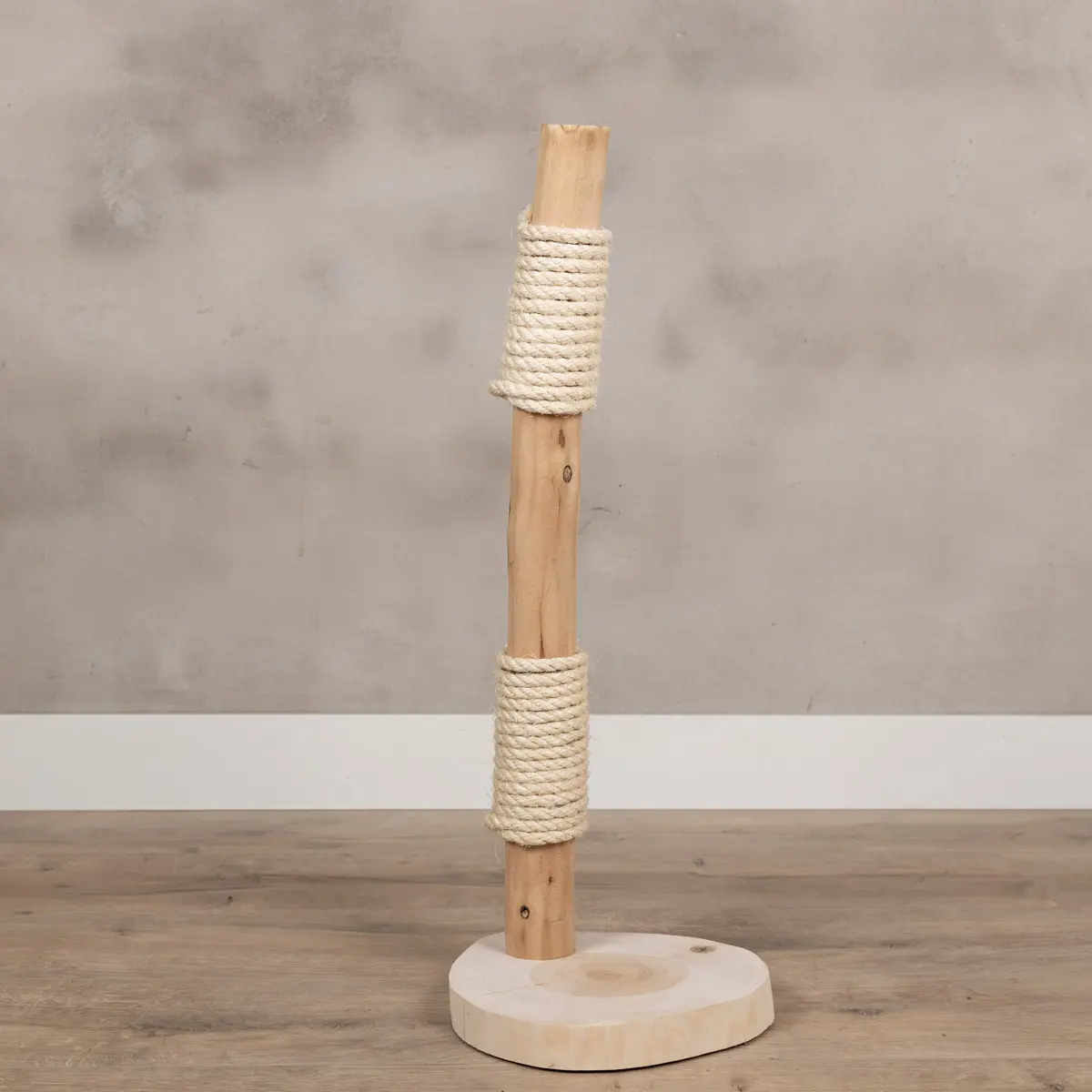 De stam is voorzien van meerdere stukken natuurlijk touw, zodat jouw kat verschillende plekken heeft om te krabben en zich helemaal kan uitleven. Door het gebruik van een echte boomschijf als voet is de paal stevig en stabiel.