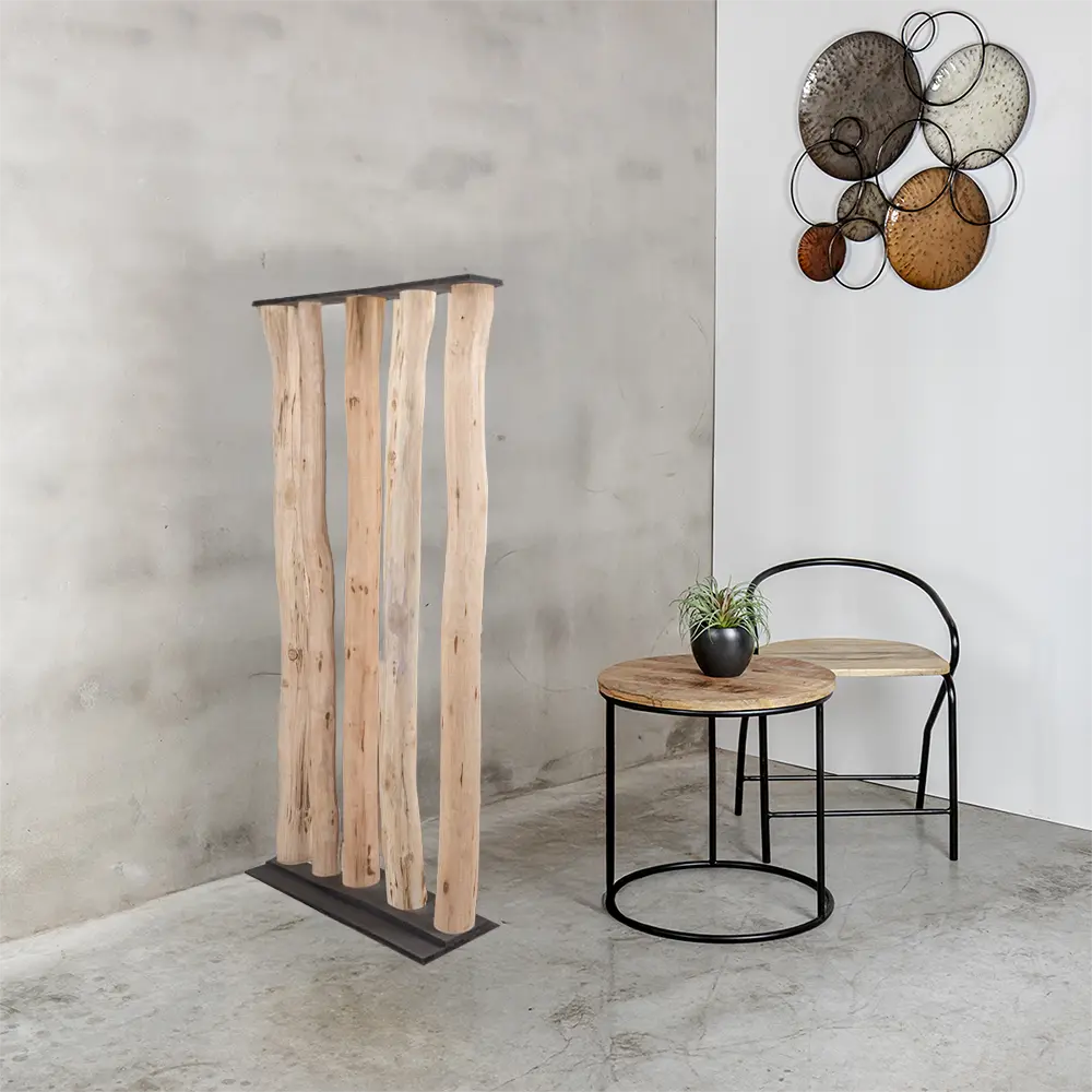 Roomdivider Magnus met ontschorste stammen en zwarte voet.