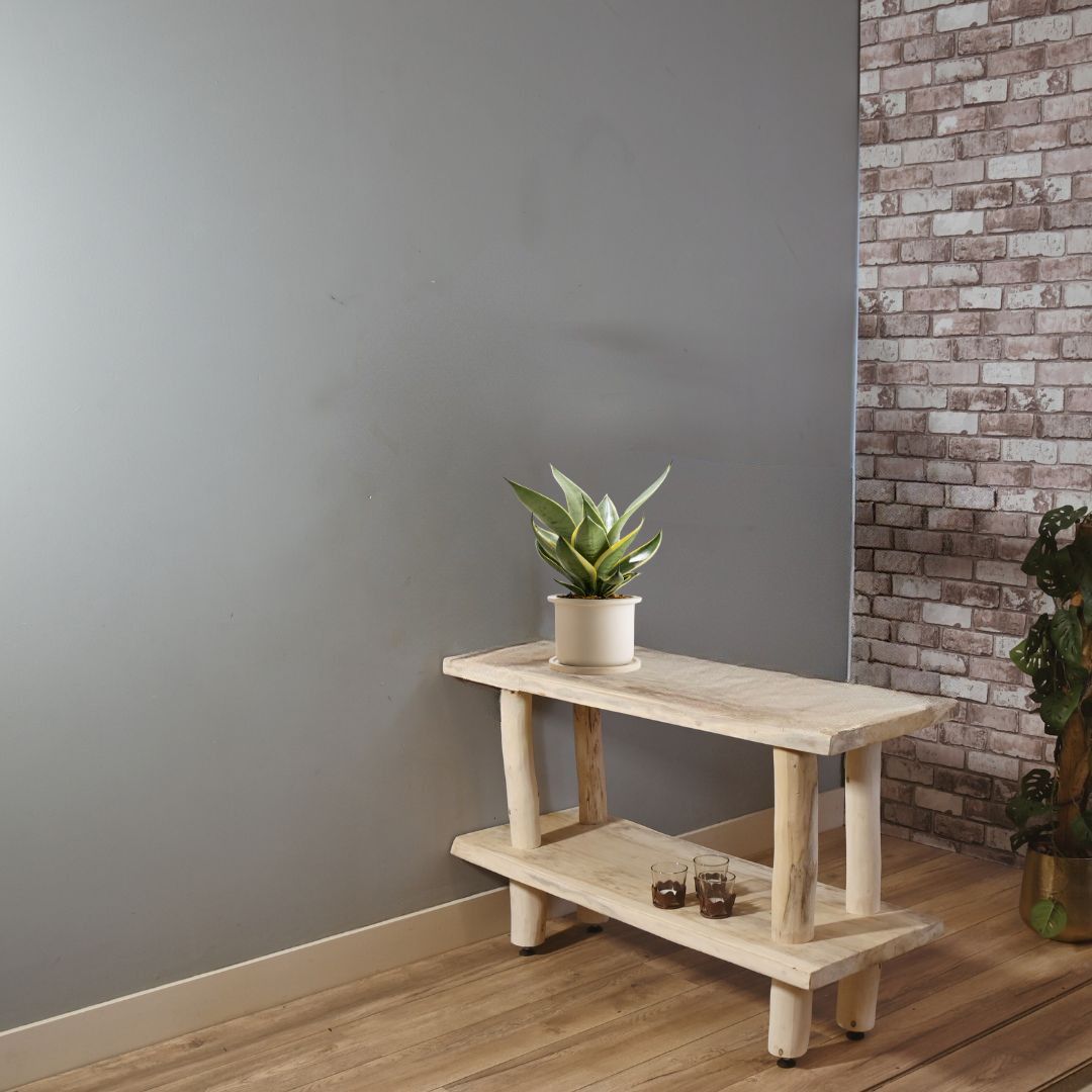 Met zijn hoogte van 65 cm en 2 lagen creëert hij een rustige scheiding in de ruimte zonder zicht of licht te blokkeren. Plaats hem achter de bank voor extra stylingruimte, gebruik hem als lage boekenkast of laat planten en objecten de kamer verbinden.