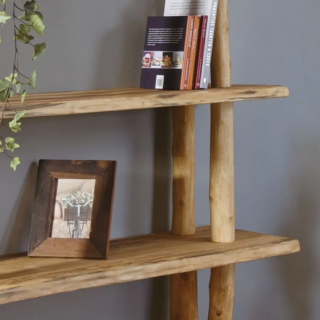 Sidetable Einar brengt natuurlijke kracht in je interieur zonder te overheersen. De boomstammen vormen een elegante, organische basis voor de licht geschuurde loofhouten planken. Zowel de stammen als de planken zijn afgewerkt met een warme Old Naturel-olie, wat de tafel een sfeervolle en natuurlijke uitstraling geeft.