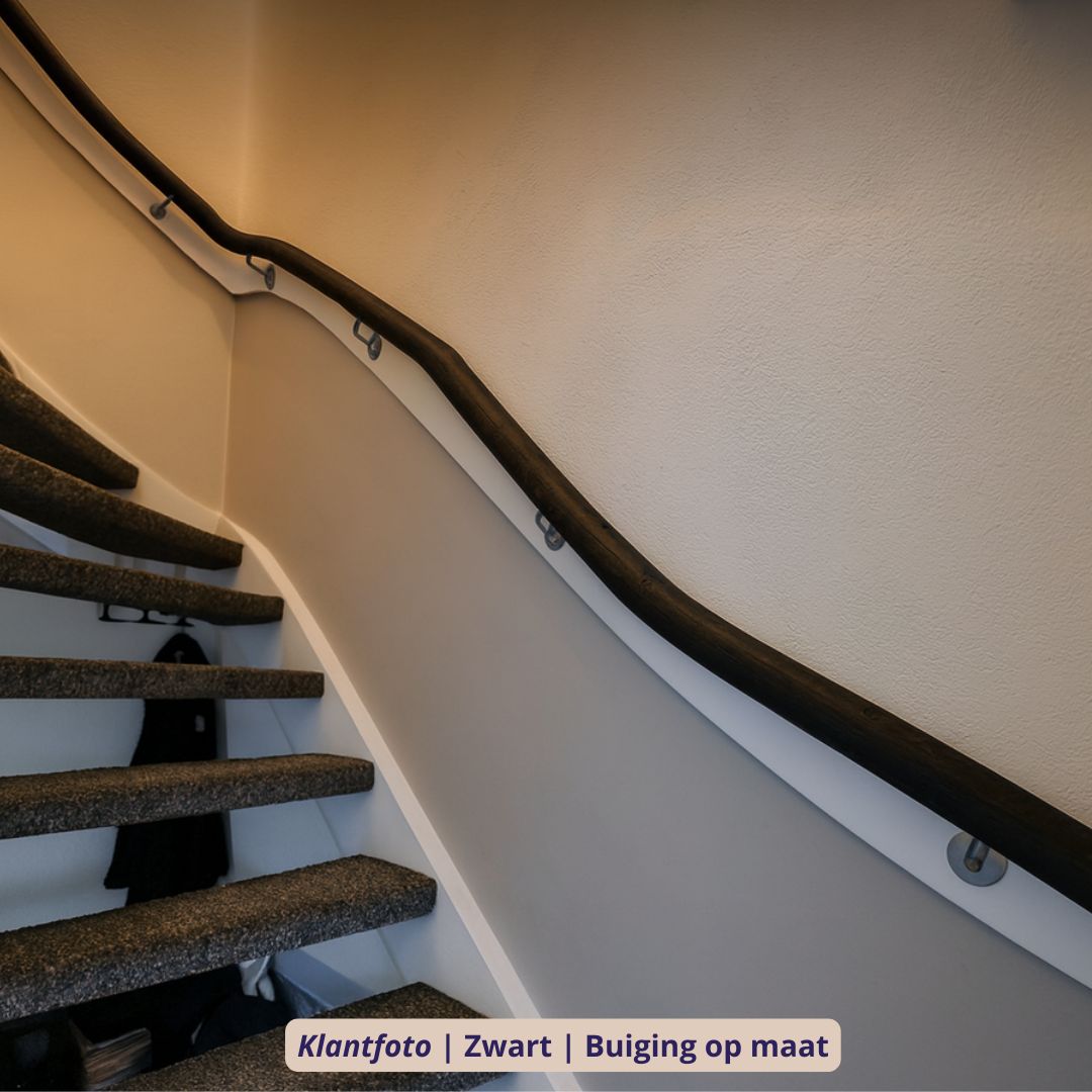 Elke trapleuning is verkrijgbaar met of zonder beugels, leverbaar in zwart, wit of RVS, zodat je de stijl volledig kunt afstemmen op jouw interieur. Er zijn drie prachtige varianten beschikbaar: de rechte uitvoering, de natuurlijk gekronkelde versie en de op maat gebogen leuning.
