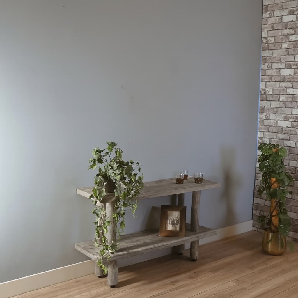 Geef je woonkamer een natuurlijke eyecatcher met boomstam TV‑meubel Javi. Het meubel combineert stoere boomstampoten met massieve, geschuurde loofhouten legplanken afgewerkt met een warme Grey wash olie. De organische vormen van de stammen en de rustige tekening van het hout zorgen voor een uniek contrast: rauw, maar verfijnd.