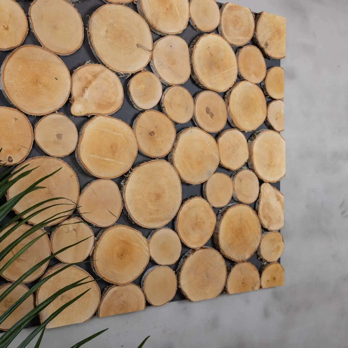 De boomstam wanddecoratie Gus brengt warmte en natuur in huis met zijn berkenschijven van 10 tot 25 cm. De variatie in formaat en nerven geeft het paneel een levendig karakter en zorgt voor een speels patroon dat nooit verveelt.