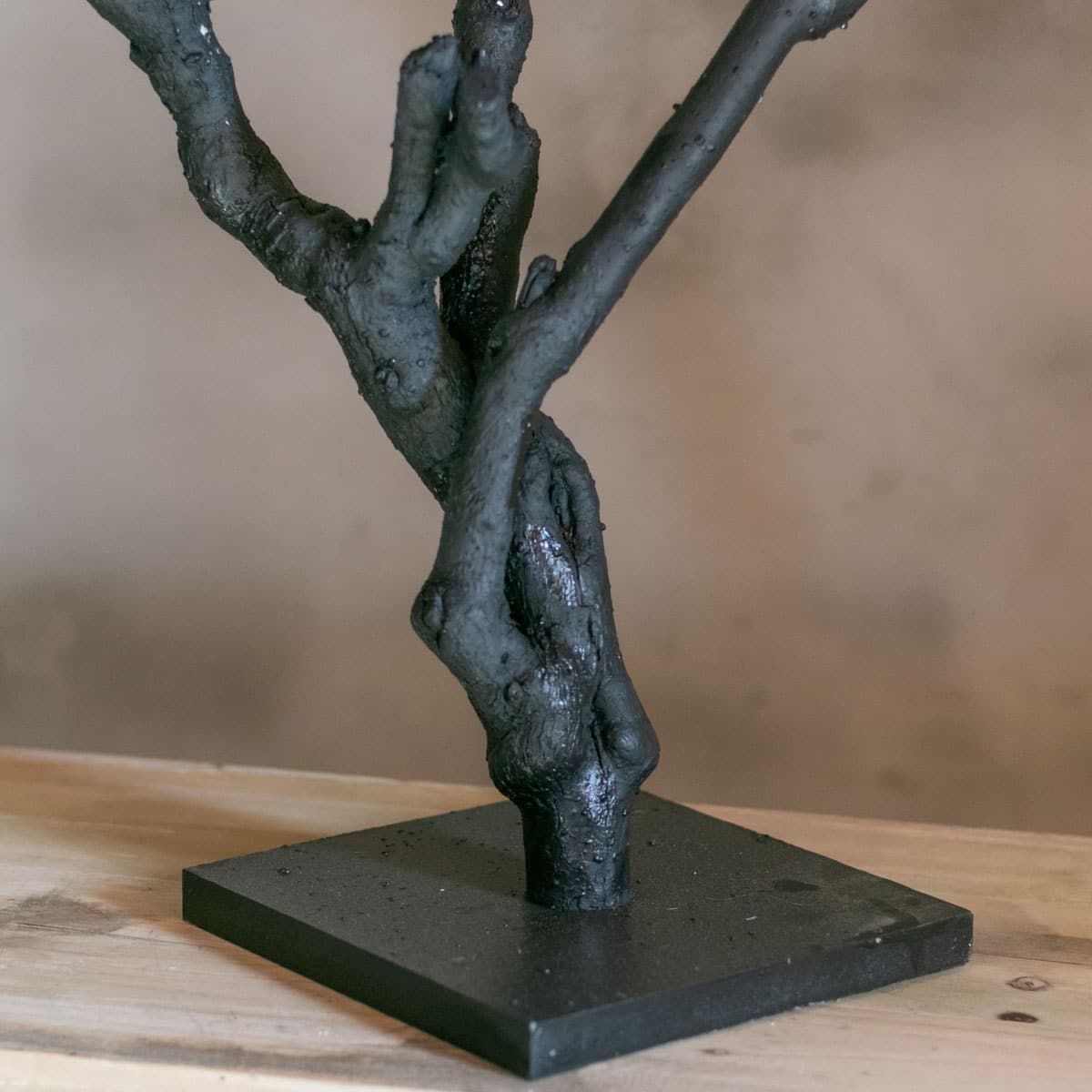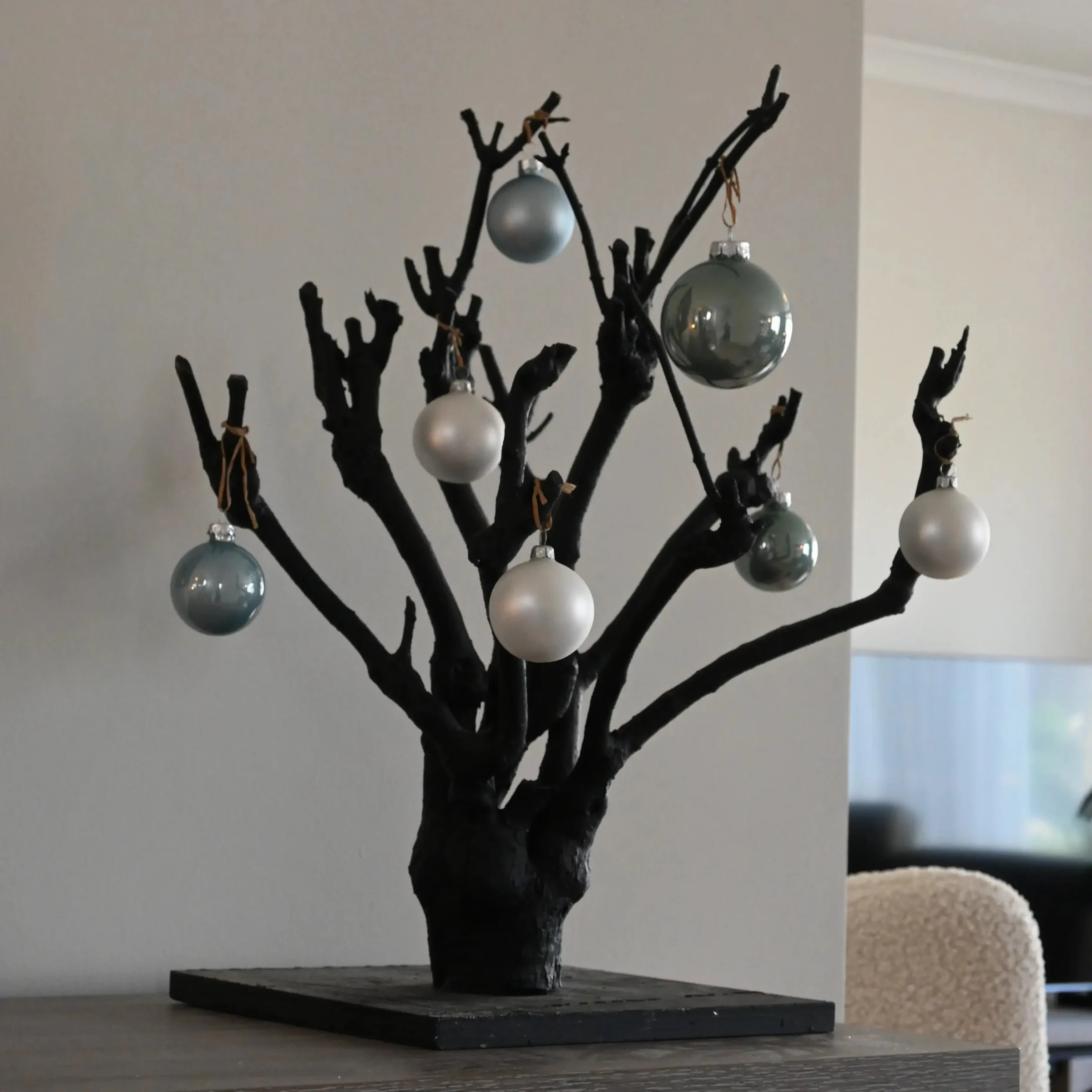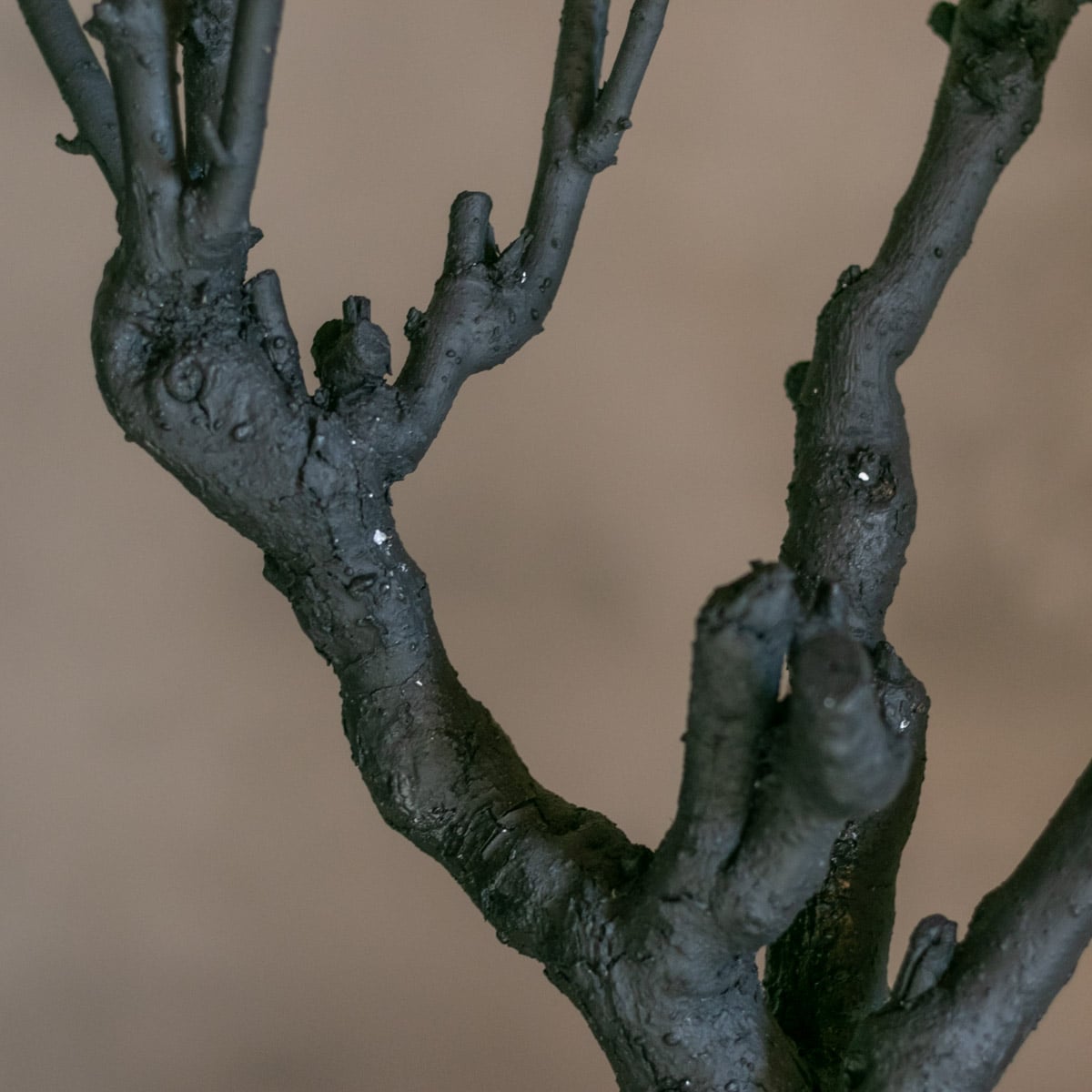 Dit stijlvolle decoboompje van ca. 50 cm is gemaakt van echte seringentakken en volledig zwart geverfd. Door de strakke kleur krijgt het boompje een moderne uitstraling, terwijl de natuurlijke vorm en vertakking behouden blijven.