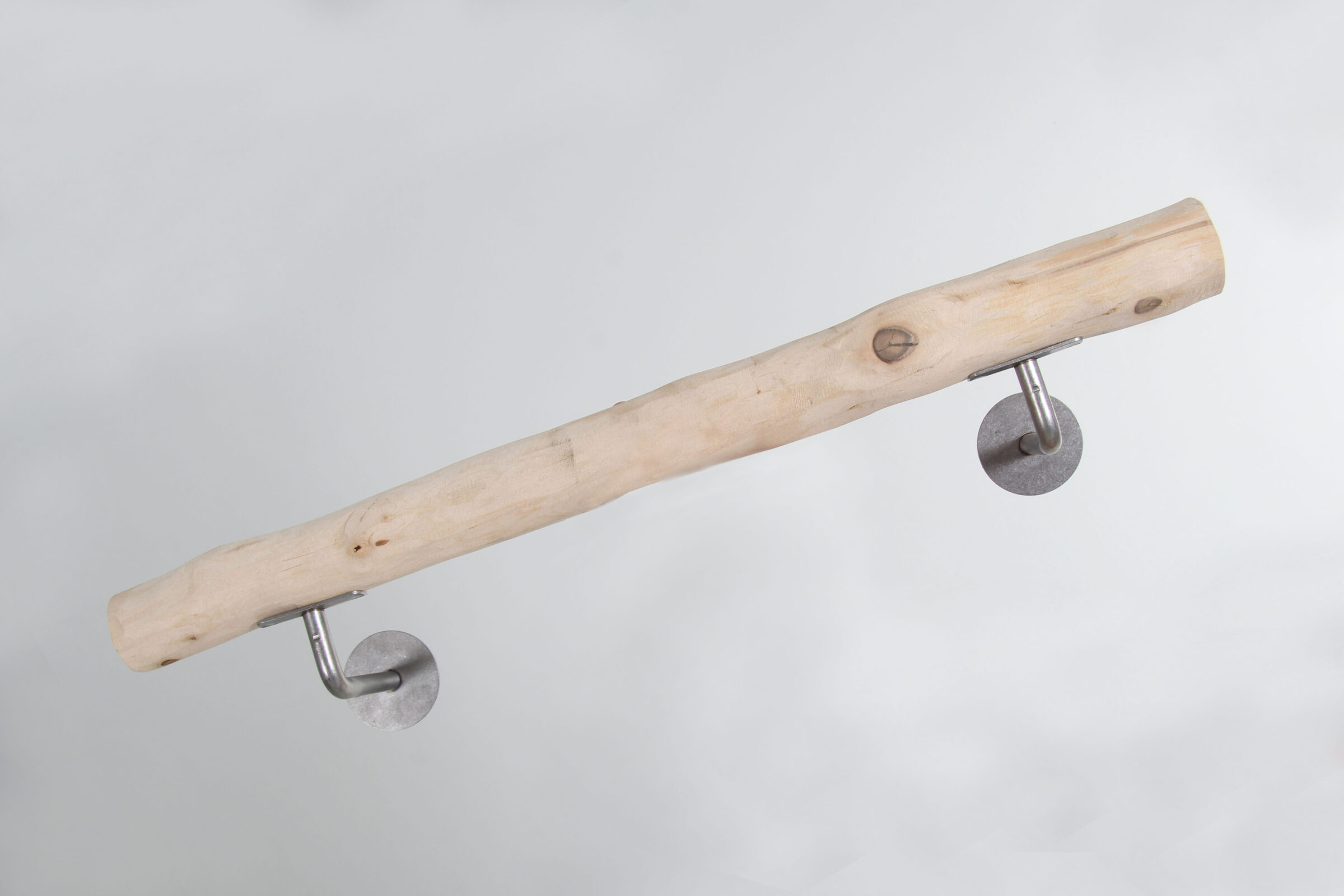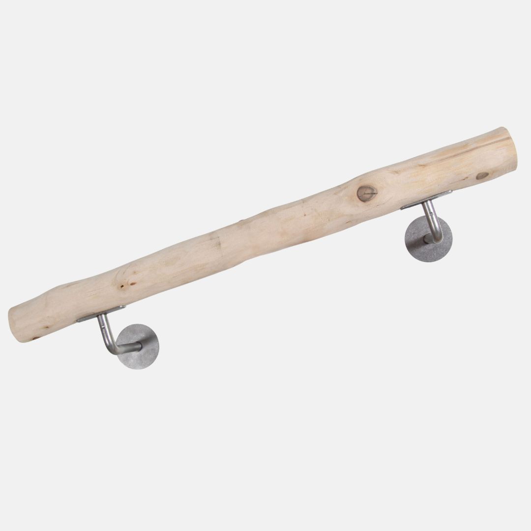 Het Esper handdoekrek combineert de charme van natuurlijk hout met de moderne uitstraling van strakke beugels. De drager is gemaakt van een ontschorste, naturel berkenstam, waardoor elk exemplaar uniek is in vorm en nerfstructuur. De stevige RVS beugels zorgen voor een solide bevestiging aan de muur en geven een strak, tijdloos contrast met het lichte hout.