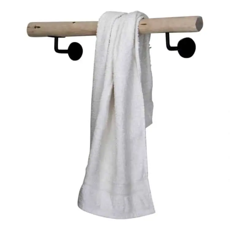 Het Magnus handdoekrek combineert de charme van natuurlijk hout met de moderne uitstraling van strakke beugels. De drager is gemaakt van een ontschorste, naturel berkenstam, waardoor elk exemplaar uniek is in vorm en nerfstructuur. De stevige zwarte beugels zorgen voor een solide bevestiging aan de muur en geven een strak, tijdloos contrast met het lichte hout.