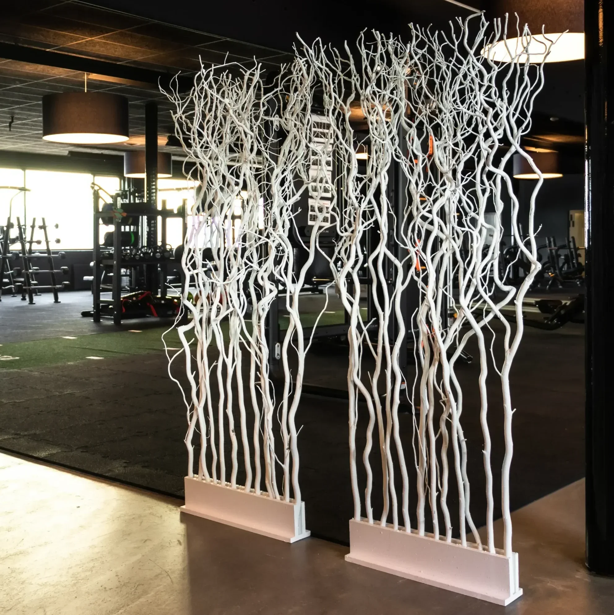 De witte afwerking benadrukt het ranke en luchtige karakter van de wilgentakken, terwijl de kronkelige vormen behouden blijven. Dankzij de open structuur laat de divider licht en lucht door, maar creëert hij toch een duidelijke afscheiding. Perfect voor woonkamers, kantoren en horeca waar zowel functionaliteit als esthetiek belangrijk zijn.