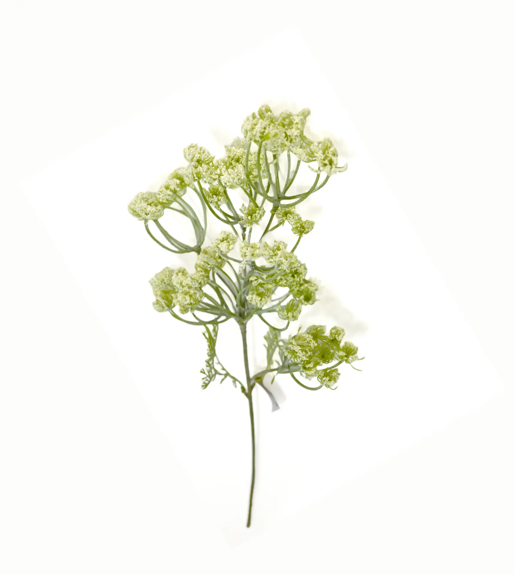 Deze kunst dille in een frisse witte tint heeft een lengte van 50 cm en brengt een luchtige en speelse uitstraling in elk bloemstuk. De fijne bloemtrosjes en slanke steel zorgen voor een natuurlijk effect, waardoor de tak perfect te gebruiken is als opvulling of accent in een boeket.