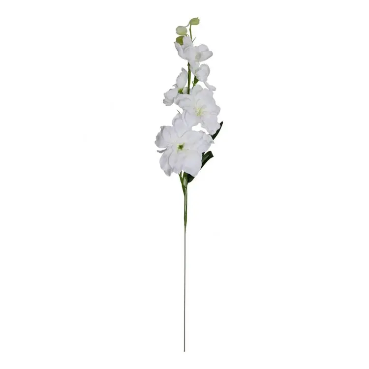 Deze elegante kunst ridderspoor in het wit heeft een lengte van 40 cm en brengt een frisse en stijlvolle uitstraling in huis. De fijne bloemetjes langs de steel geven de bloem een luchtig en speels karakter, waardoor hij prachtig tot zijn recht komt in zowel losse vazen als gemengde boeketten.