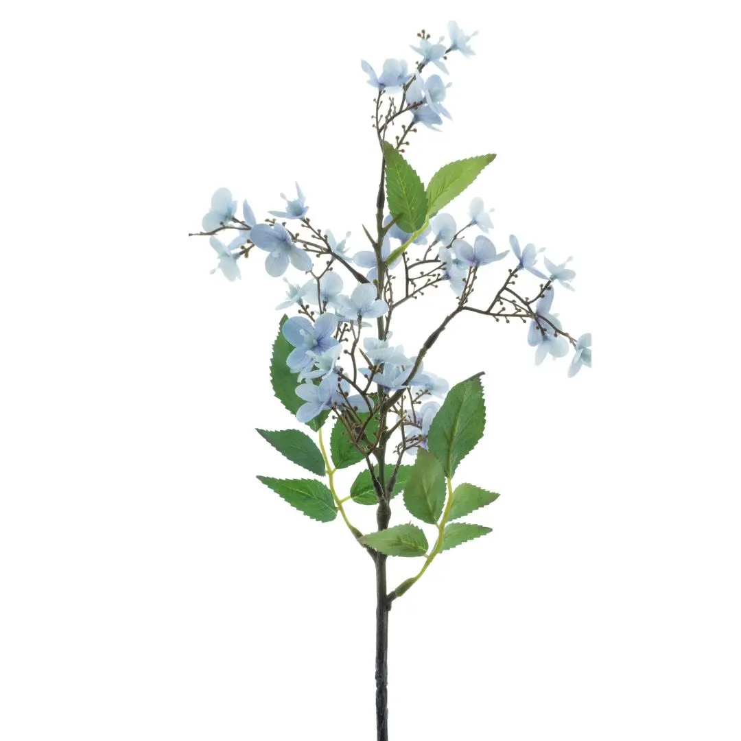 Breng een vleugje kleur en elegantie in je interieur met deze kunst wilde rozentak in een zachte blauwe tint. De tak is 50 cm lang en gedetailleerd afgewerkt met realistische bladeren en subtiele bloemetjes, waardoor hij nauwelijks van echt te onderscheiden is.