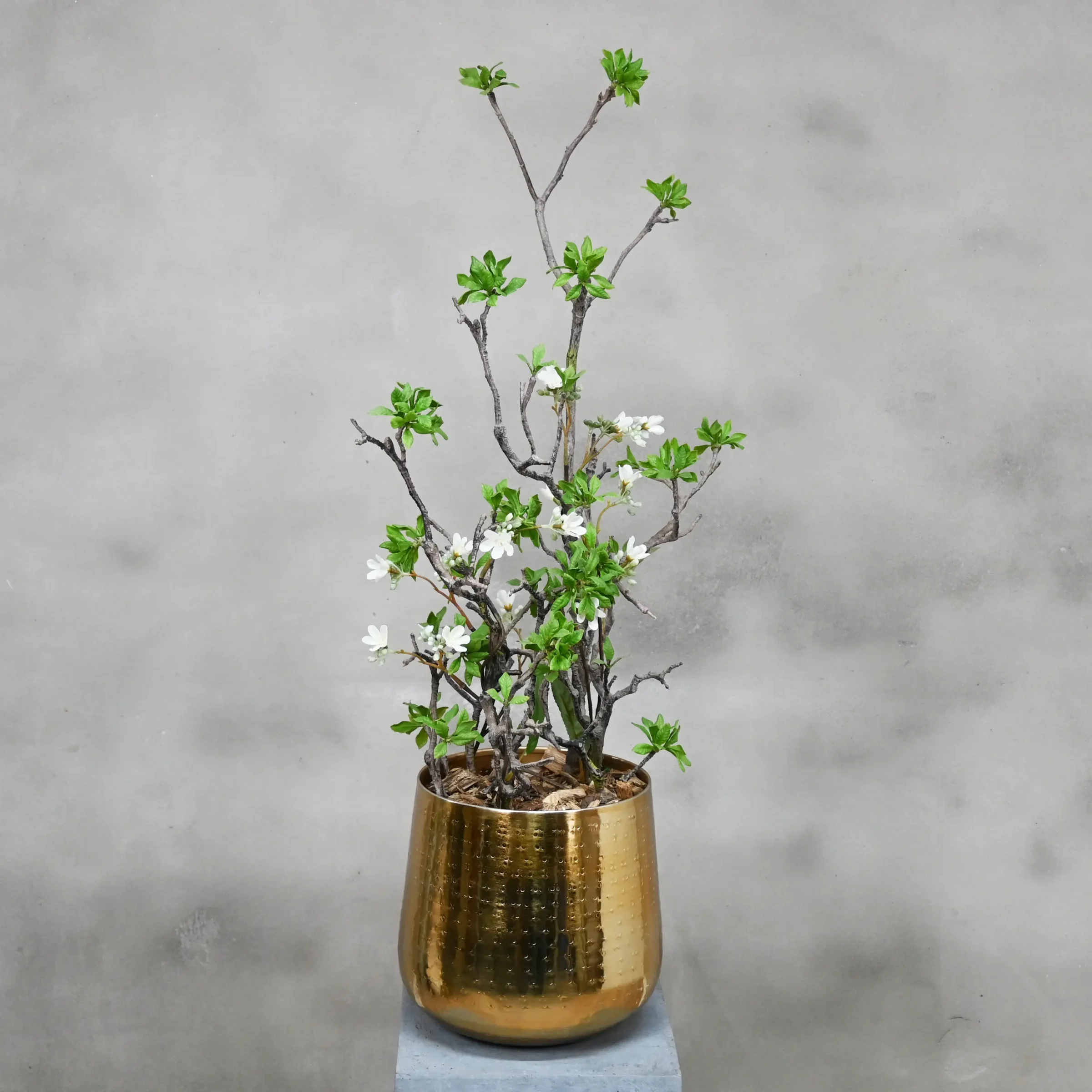 Het bloemstuk wordt standaard geleverd in een binnenpot, maar is ook te bestellen met een divers aanbod aan overpotten waardoor het niet alleen natuurlijk oogt maar ook een chique en moderne toevoeging is aan elk interieur. Dankzij de hoogwaardige kunstmaterialen blijft dit stuk jarenlang mooi, zonder verzorging of water.
