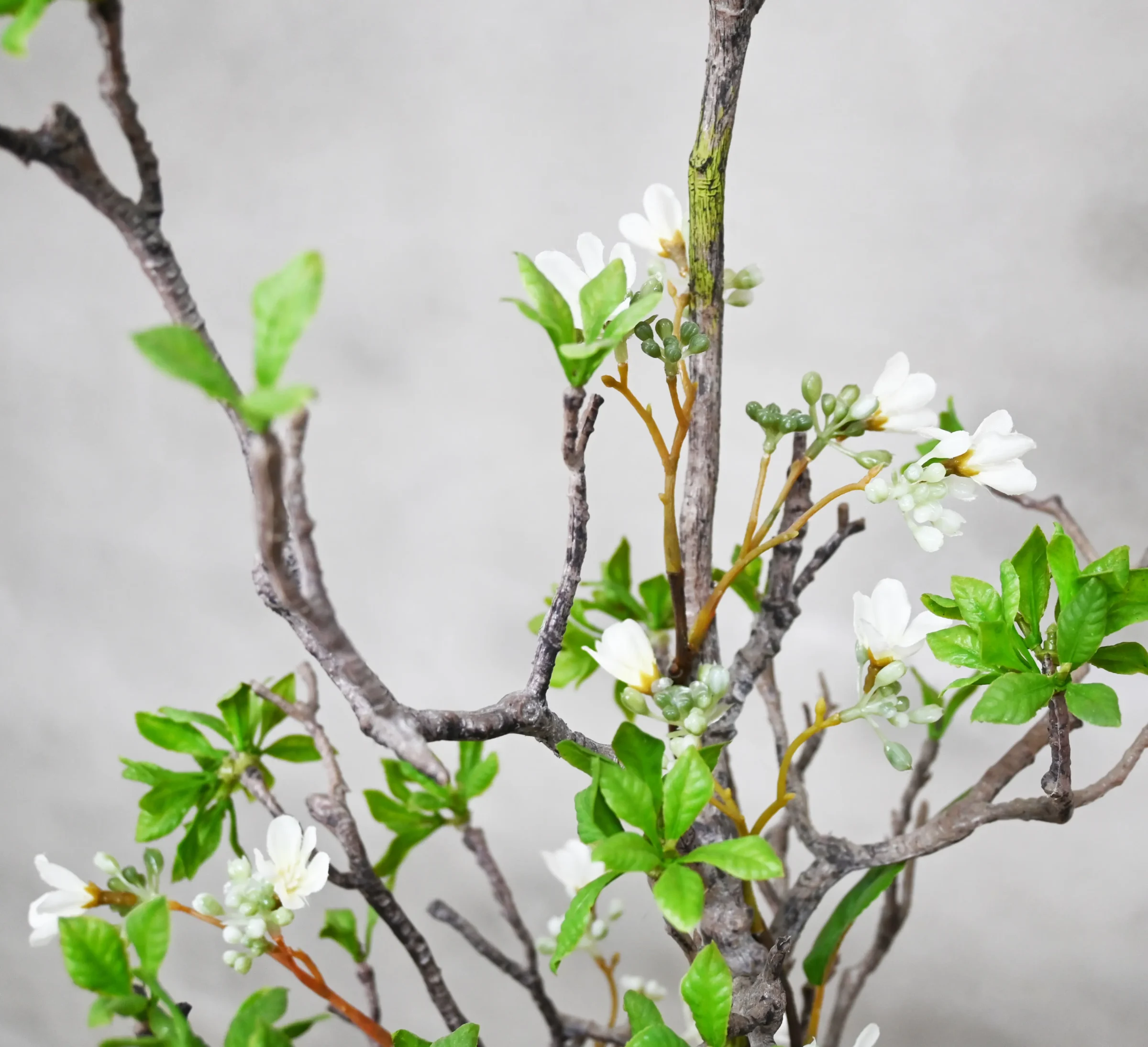 Haal de lente het hele jaar door in huis met dit prachtige kunstbloemstuk Maya. De sierlijke takken met frisgroene bladeren en fijne witte bloemetjes geven een natuurlijke en frisse uitstraling die perfect past in zowel een modern als landelijk interieur.