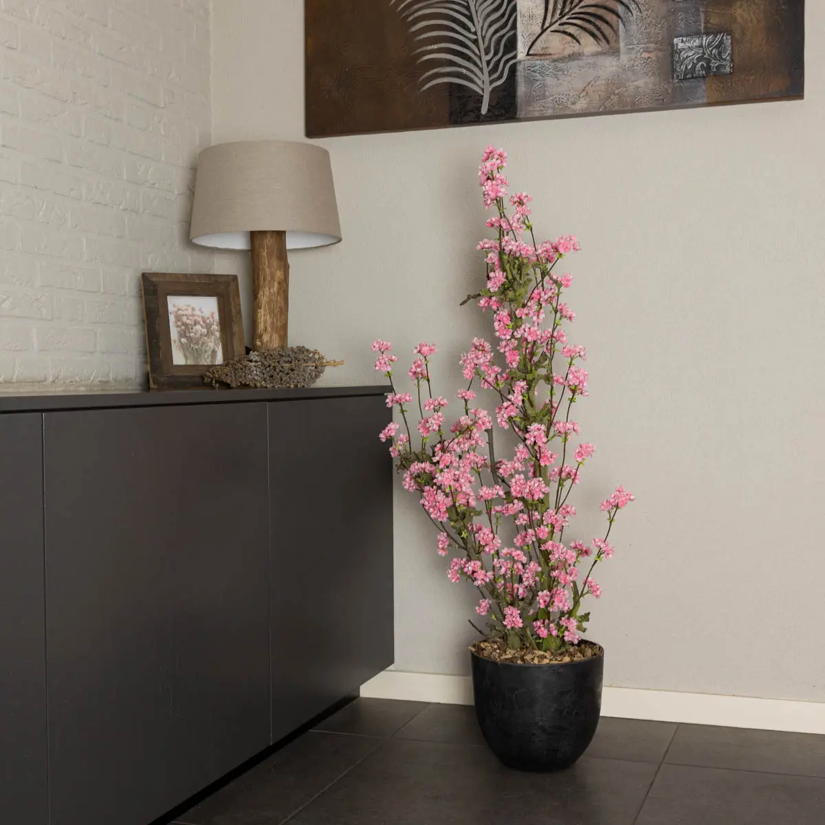Breng de schoonheid van de lente in huis met het kunst bloesemstuk Charlotte. De felroze bloesemtakken geven een frisse en vrolijke uitstraling en zorgen voor een kleurrijk accent in jouw interieur. Dankzij de levensechte afwerking van de bloemetjes oogt dit arrangement alsof de bloesems net in bloei staan.