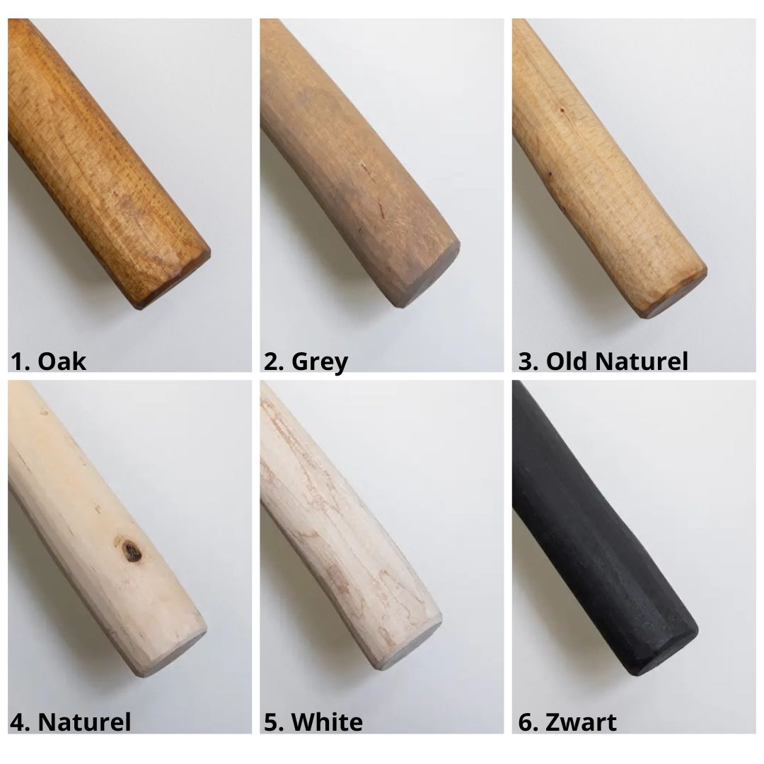 De kleur is aangebracht middels een oliebehandeling. Deze oliebehandeling geeft de stammen niet alleen een gewenste kleur, maar zorgt ook voor een beschermende laag die de levensduur van de leuningen ten goede komt en vuilafstotend is. Houd er wel rekening mee dat de kleur van het proefstukje nooit volledig identiek zal zijn met de kleur van de stammen. Deze zijn een natuurproduct, waardoor de uitwerking van de olie bij iedere stam licht afwijkt. Uiteraard streven wij er wel naar om de kleur van de stammen in eenzelfde bestelling zoveel mogelijk overeen te laten komen.