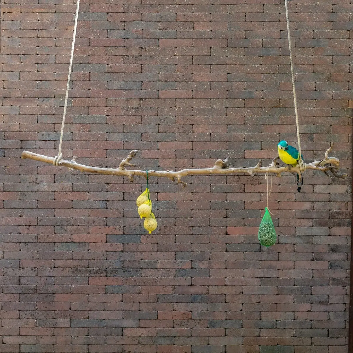 Deze gezandstraalde voliëretak van circa 120 cm is ideaal voor gebruik in een vogelkooi of volière. Doordat de tak volledig ontschorst en gezandstraald is, heeft hij een gladde afwerking en een lichte, natuurlijke uitstraling. Vogels kunnen er comfortabel op zitten, klauteren en spelen, terwijl de wisselende diktes van de tak bijdragen aan een gezonde voethouding. De tak kan eenvoudig worden opgehangen met touw of haken. Voer en decoratie die zichtbaar zijn op de foto, worden niet meegeleverd.